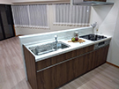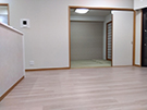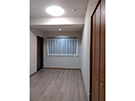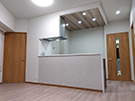 造り付けの収納があることにより変形していた洋室の平面形状を見直し、生活動線に配慮した使いやすい2LDKのプランに変更しました。各洋室にはウォークインクローゼットを設け十分な収納スペースを確保しました。床材色を薄いベージュ、各居室の建具色、キッチンの面材色を濃いブラウンにすることでシックな空間を演出しました。