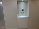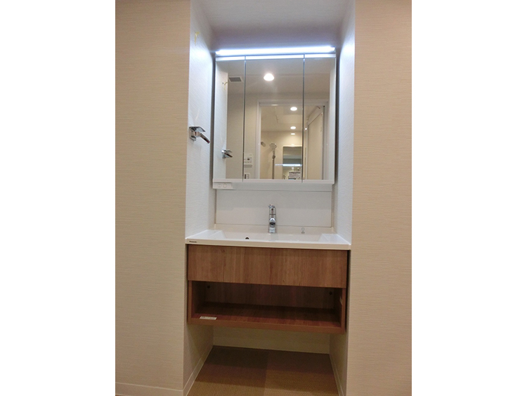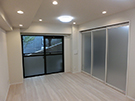 クローゼットを増やしたため変形して使いずらかった洋室を含め、全体的にプランを見直しました。洗面所、浴室、トイレも雁行していた配置を整理しシンプルな動線とすることにより、使い勝手が向上しました。LDKと洋室の間仕切りに3枚引込戸を採用し、開放時にはLDKと洋室を大きな空間として一体的な利用ができるよう間取りに可変性を持たせました。