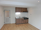 旧来型の田の字の3DKプランを変更し、15.1帖の広々としたLDKを配した2LDKにしました。LDKをバルコニー側の開口部に面して計画したことにより、リビングでくつろぎながら横浜の景色を一望することができます。LDKのフローリングには薄いブラウン色、キッチン面材には濃いブラウン色を採用したことでシックな空間に仕上がりました。