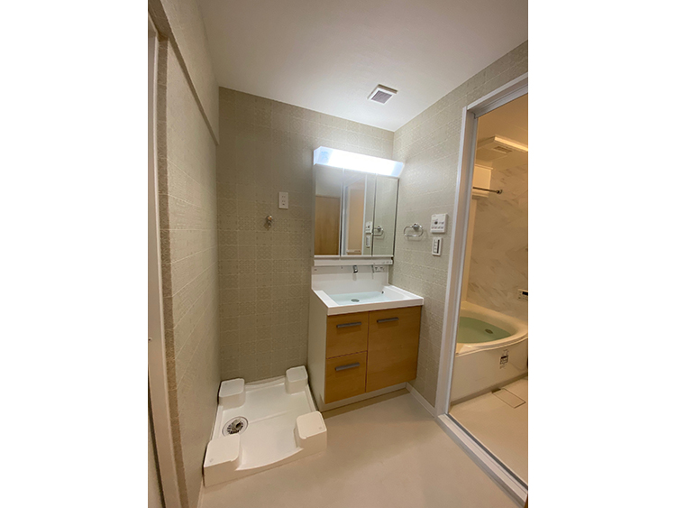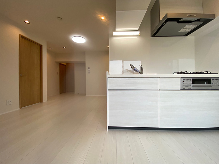 内装もやさしいナチュラルな色で統一いたしました。その中でも、フローリングと建具には木のやすらぎを感じ取れるような部材を選ぶことで、何となく「和」を感じられるような、ほっこりとできる居心地の良い空間に仕上げました。