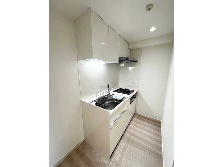 間取は一切変えず、設備器具の入替を行いました。照明計画を変更することにより、他の部屋との差別化を図りました。照明にバリエーションを持たせるように引掛けシーリングに取付けるスライド回転式ライティングレールを選定いたしました。