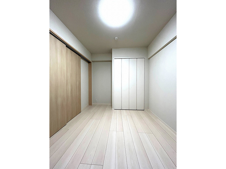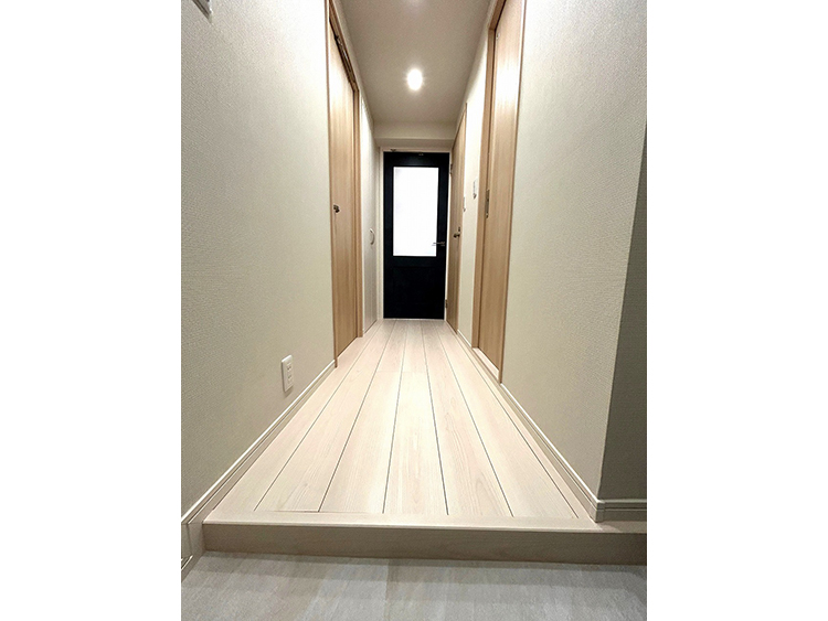 LDKを履き出しの部屋とつなげ、カウンターキッチンを設置して、開放感のあるリビング空間にしました。また、柔らかな色合いの中にアイアン調の濃い色を配置することにより、メリハリが出ました。