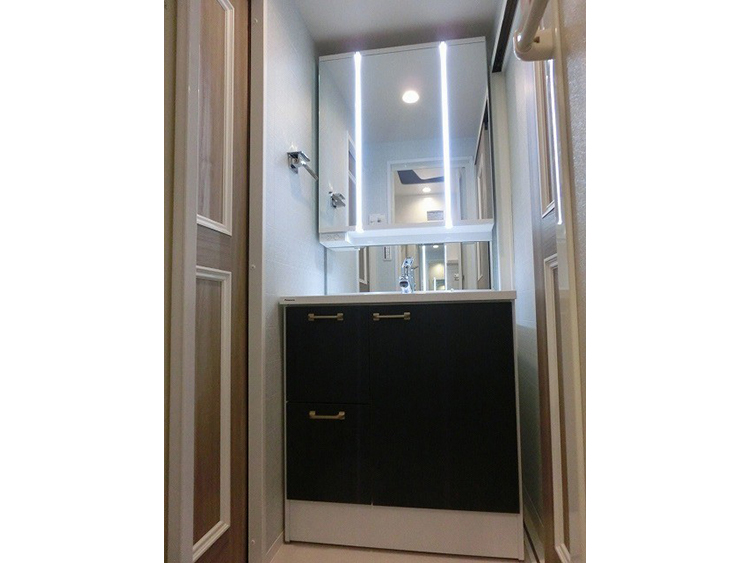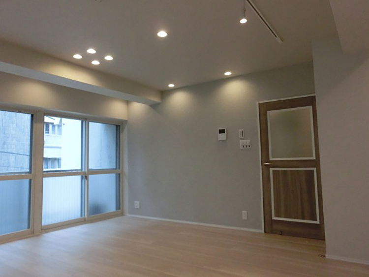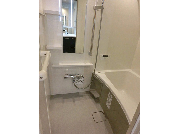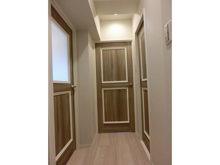 トイレと洗面化粧台が同じ空間にあった従来のプランを見直し、それぞれを独立させることでプライバシーを確保しました。手狭だった浴室のスペースを広げ、明るく衛生的なユニットバスに変更しました。LDKのフローリングとキッチンの面材はベージュ色で統一し、ナチュラルで広がりのある空間に仕上げました。