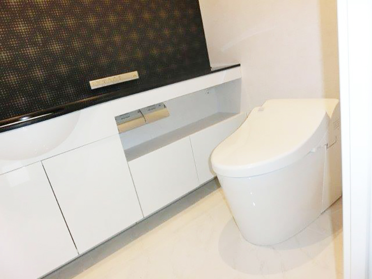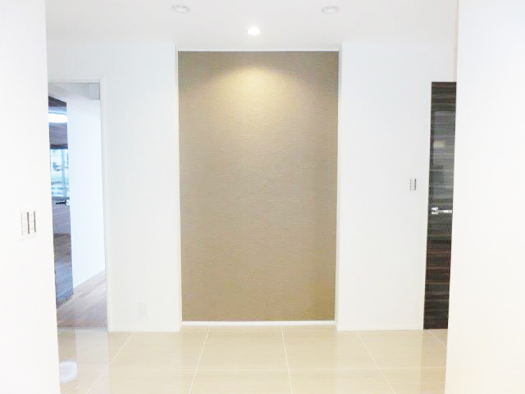 各スペース(玄関、廊下、トイレ、洗面、浴室等)を通常よりも広めに、床仕上げはすべて大理石にし、高級感と一体感を出しました。さらに天井や壁面に間接照明を取付ることにより空間にメリハリと広がりが生まれました。